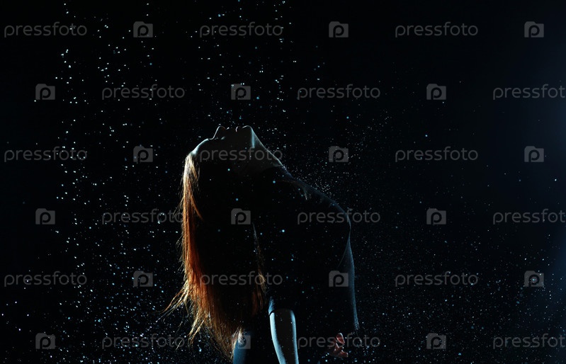 Силуэт женщины на темном фоне под капельками дождя