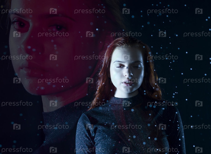 Красивая девушка на темном фоне под капельками дождя
