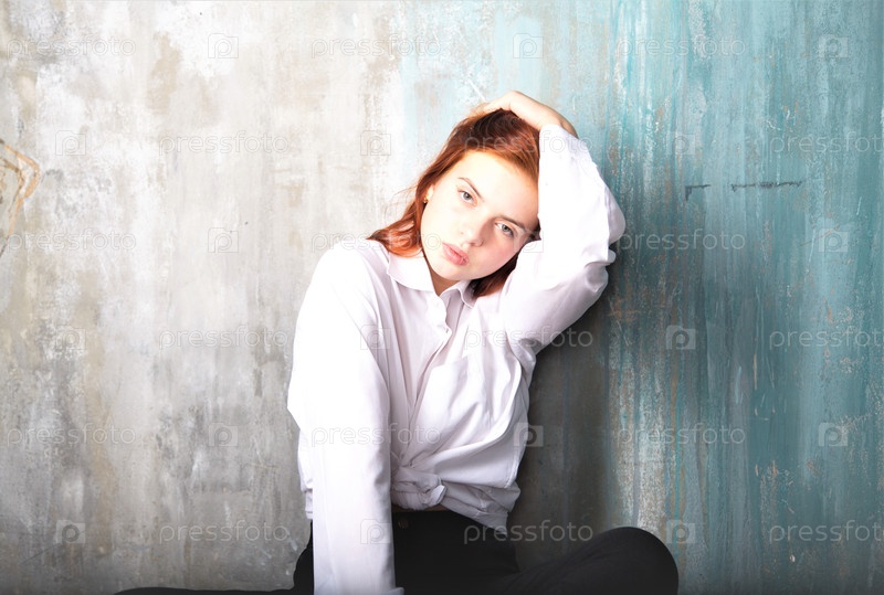 Красивая девушка на синем фоне в студии