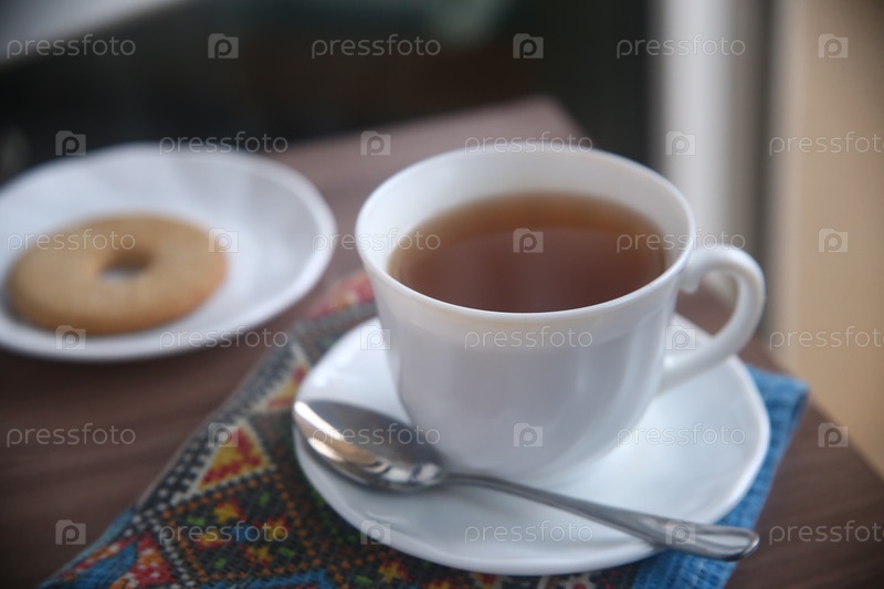 Чашка кофе с печеньем на тарелке