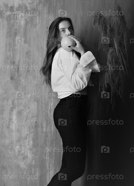 Красивая девушка на черно-белом фото с фруктами