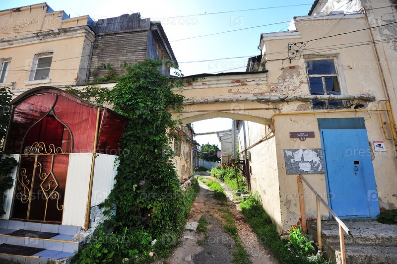 Старые ветхие здания на Соборной площади в Касимове