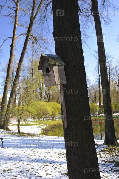 Птичий домик на дереве в парке