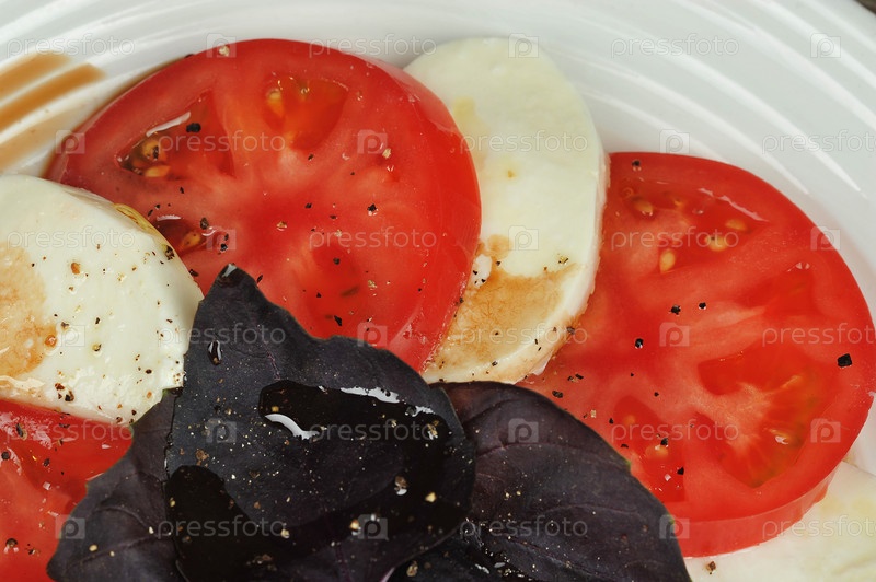 Салат капрезе - помидоры, базилик и сыр моцарелла
