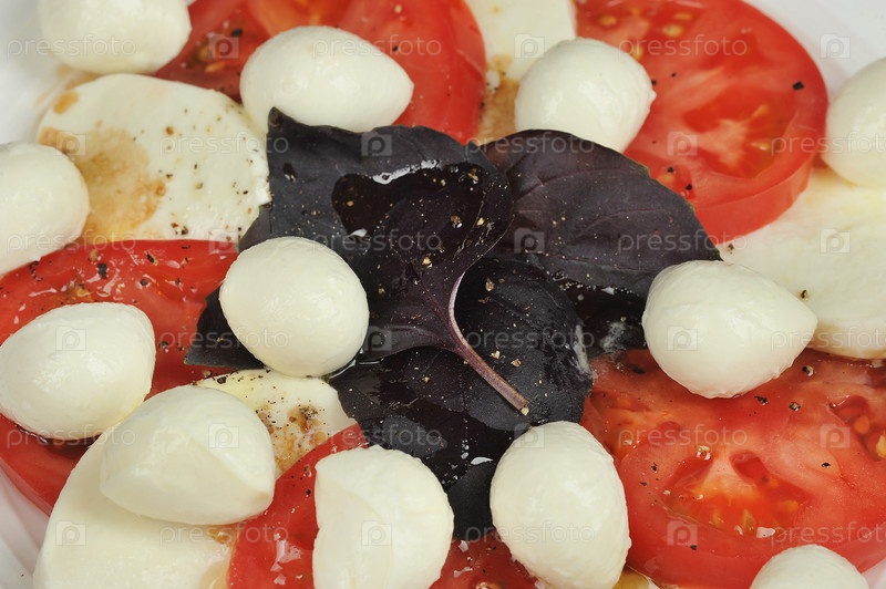 Салат капрезе - помидоры, базилик и сыр моцарелла