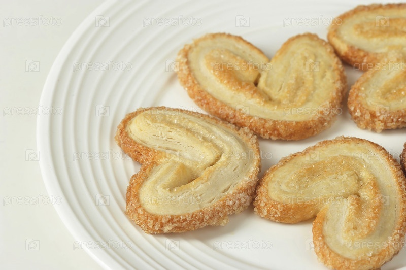 Печенье в форме уха на белой тарелке