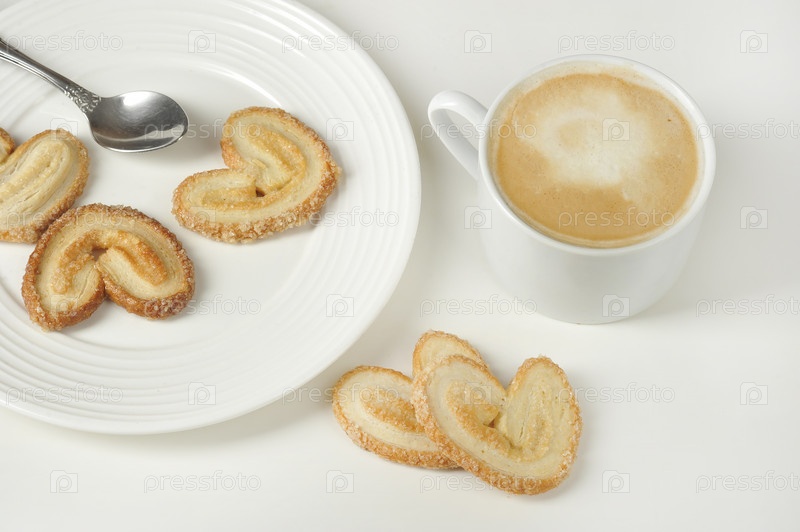 Печенье и кофе на белом фоне