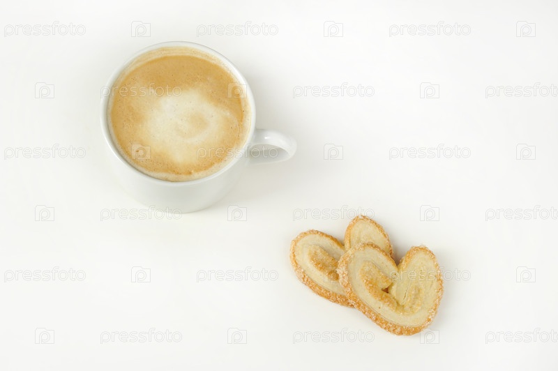 Печенье и кофе на белом фоне