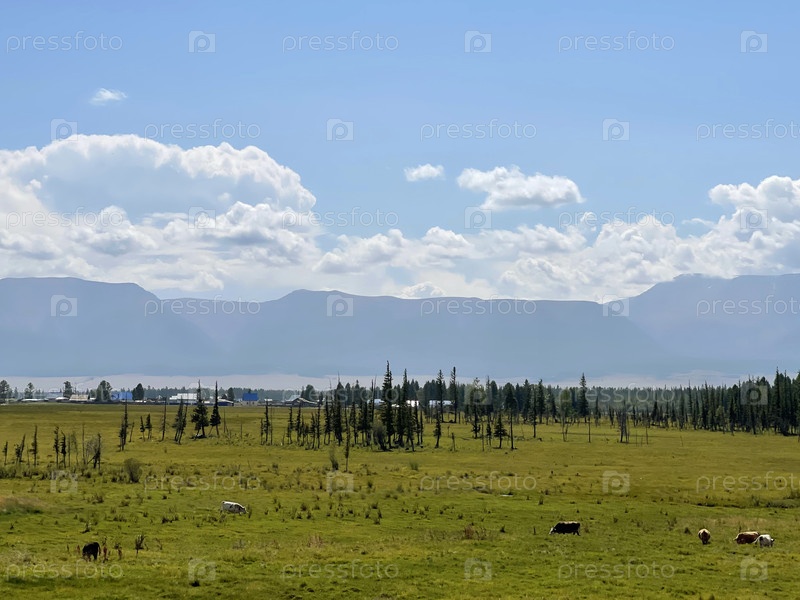 Степа на фоне гор Алтая в красивый пасмурный день