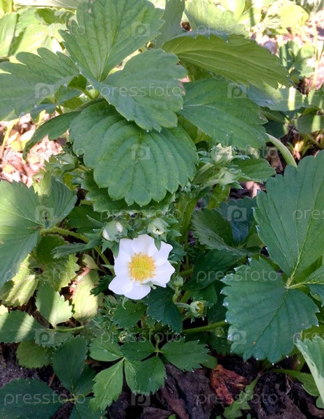 клубничный куст с цветением