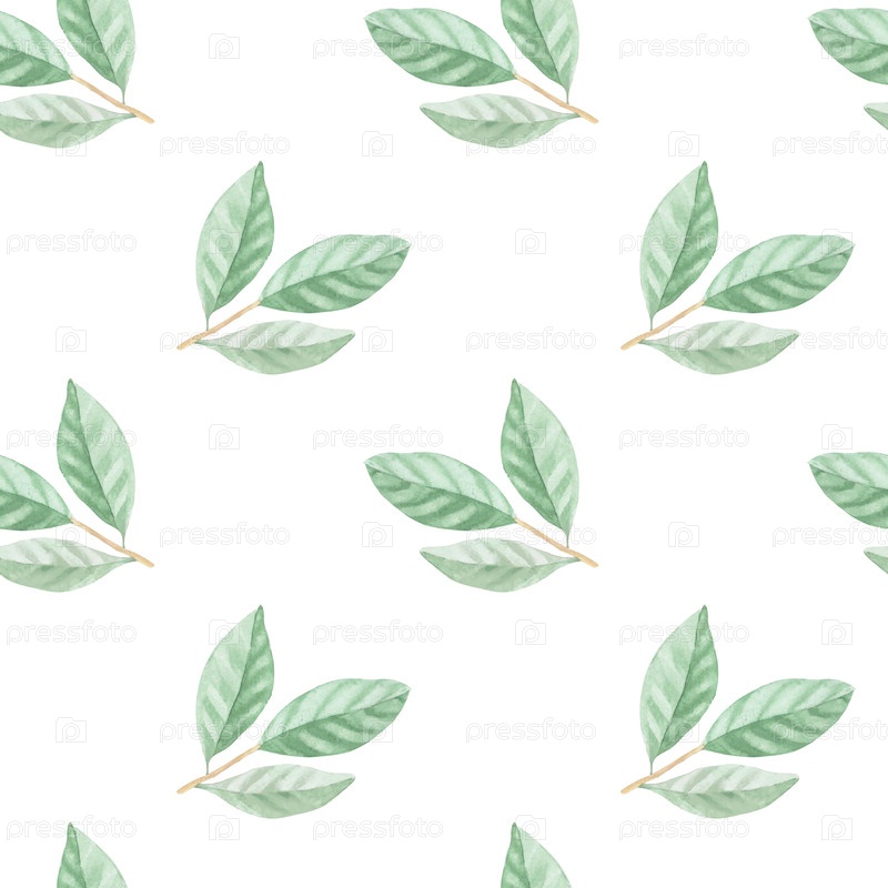 Бесшовный рисунок листьев. Иллюстрация акварельных красок ручной работы. Для дизайна упаковки, карт, обложки, обоев, печатных работ, этикеток на продуктах и ткани