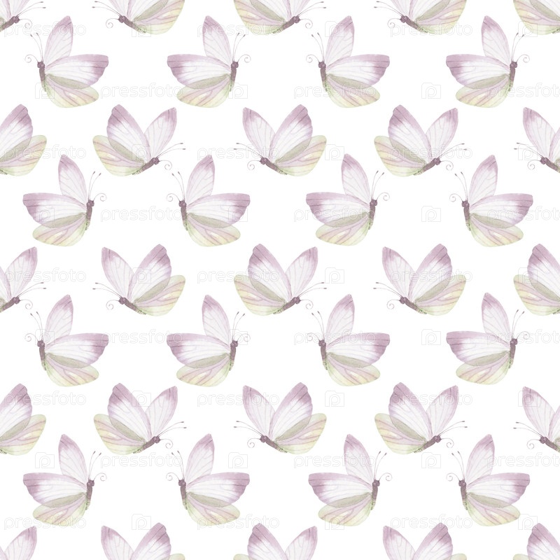 Бесшовный рисунок бабочки. Иллюстрация акварельных красок ручной работы. Для дизайна упаковки, карт, обложки, обоев, печатных работ, этикеток на продуктах и ткани