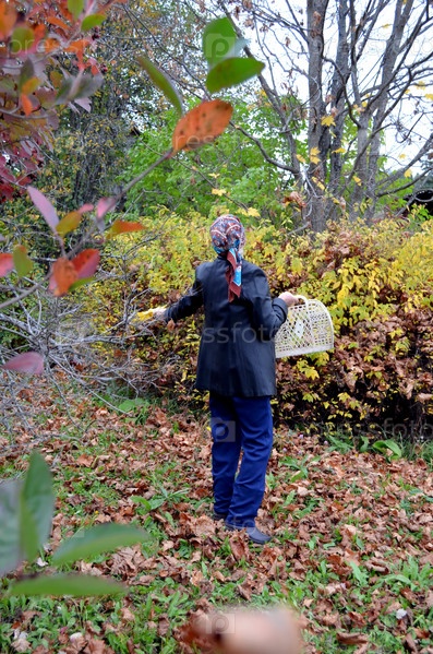 Женщина на прогулке в осеннем саду