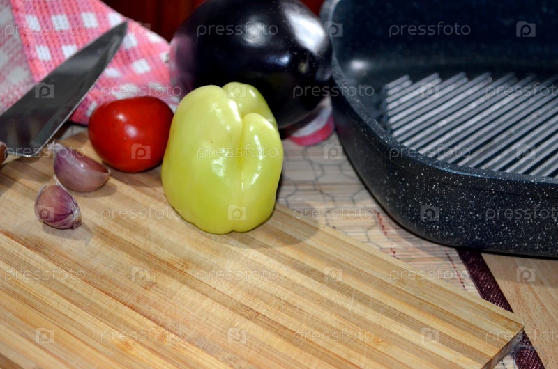 Овощи, сковородка, нож