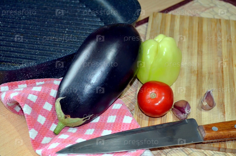 Овощи, сковородка, нож