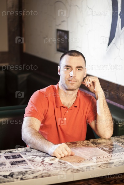 Красивый молодой человек сидит там