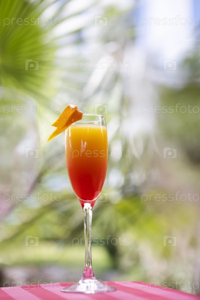 безалкогольный коктейль с пальмами свежие красно-желтые напитки тропический фон концепция летних каникул