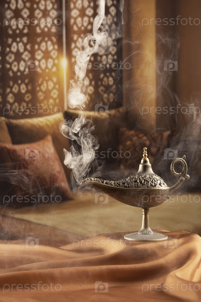 Рамадан.Люминесцент в виде арабской волшебной лампы.Рождественская открытка, приглашение на мусульманский священный месяц Рамазан Карим.Темный фон.Свободное место для копирования