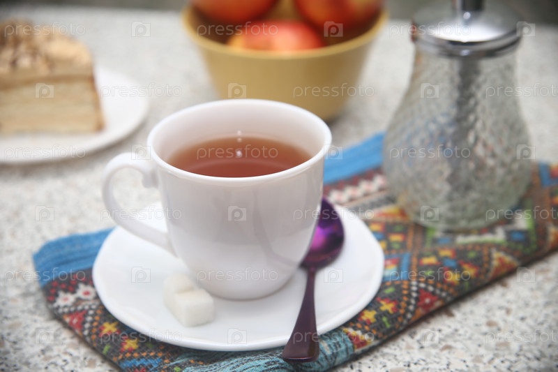Чашка чая с рафинадой и сахаром