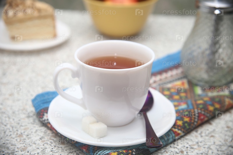Чашка чая и сахарный горшок
