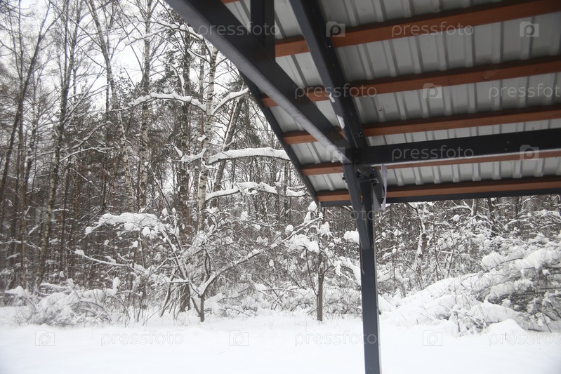 Зимний пейзаж с деревьями и железной крышей