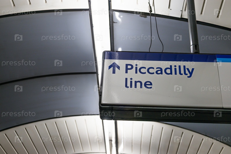 Подпольный знак Лондонской линии Пикадилли на станции метро