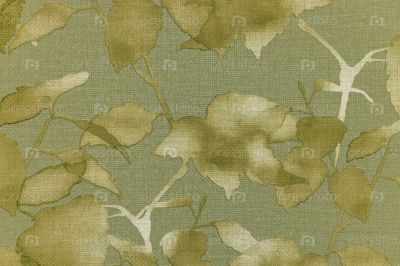 Близкий план оливково-зеленой ткани с акварельным рисунком листьев. естественная ботаническая текстура