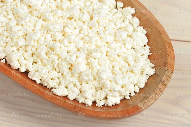 Хрупкий творог в деревянной тарелке