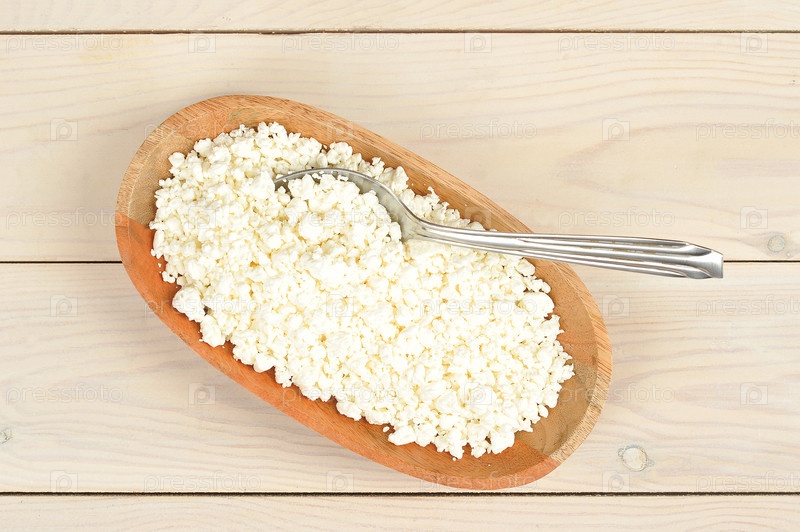 Хрупкий творог в деревянной тарелке