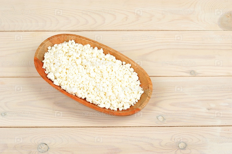 Хрупкий творог в деревянной тарелке