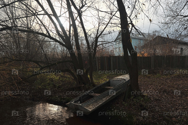 Лодка на берегу реки Волги