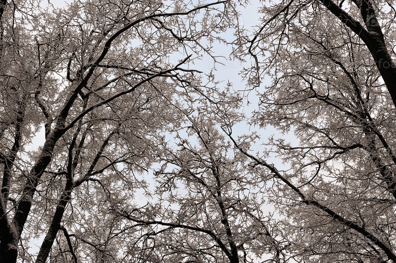 Зимний пейзаж - заснеженные ветви деревьев