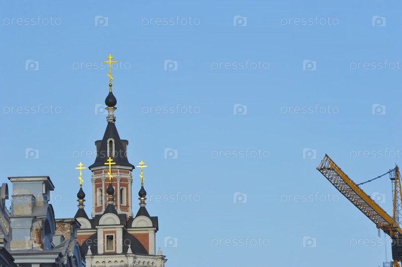 Вид на Спасский собор и строительный кран в Москве