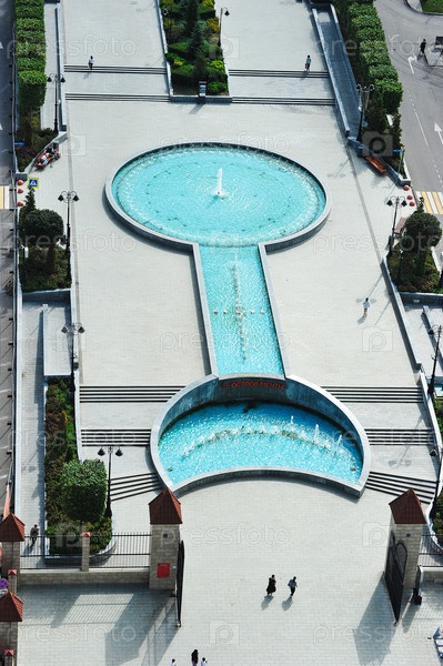 Вид на фонтан в парке 'Остров мечты' в Москве - вид сверху