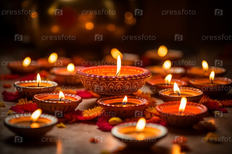 Фестиваль Дивали - Горящие лампы на очищенном столе