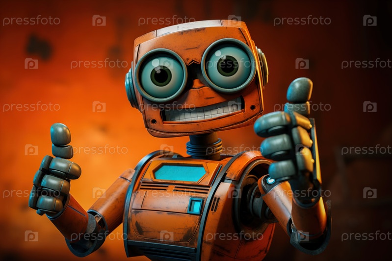 Красивый робот показывает большой палец