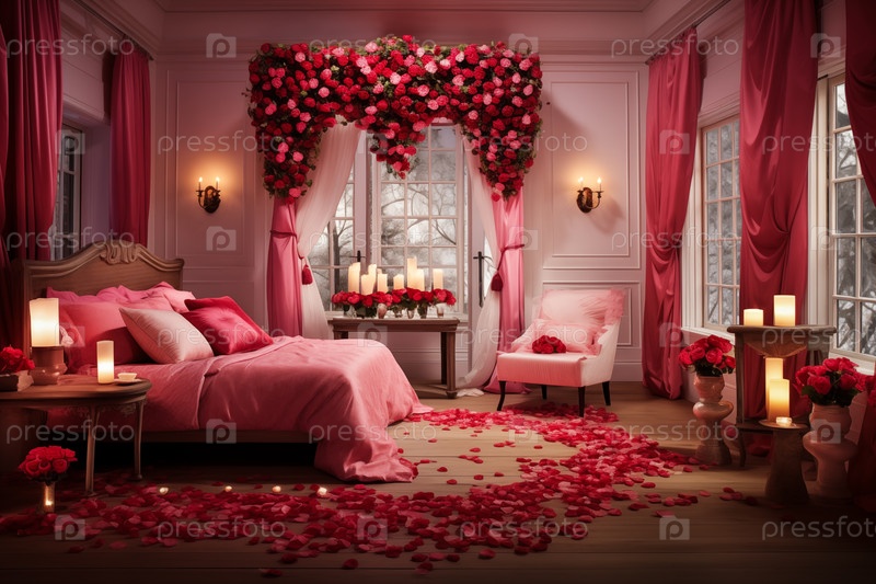 Романтический декор спальни на День святого Валентина