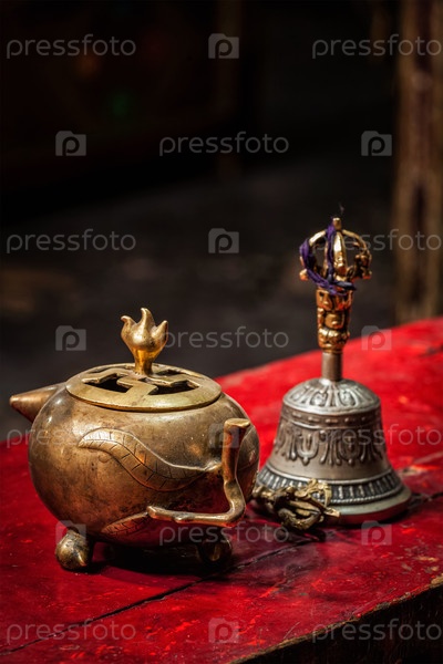 Тибетский буддийский натюрморт - ваджра, колокол и водяной сосуд