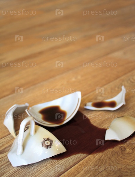 Кофе, вытекший из разбитой чашки