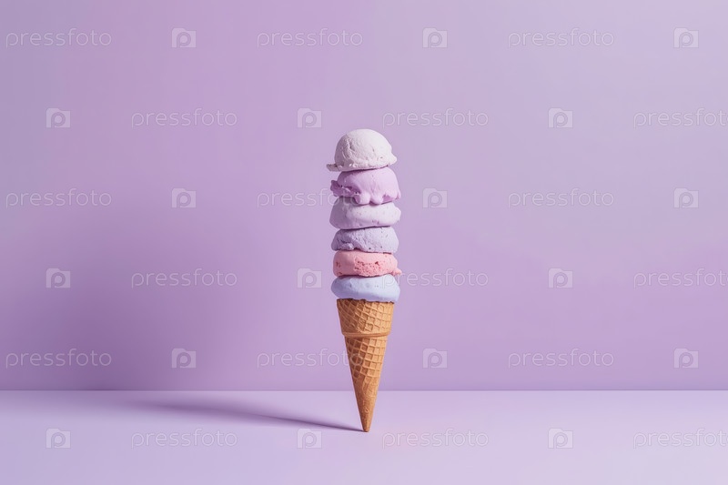 Фиолетовый конус мороженого на фиолетовом фоне. Минимализм. Ванильное мороженое. Баннер, реклама. Всемирный день мороженого