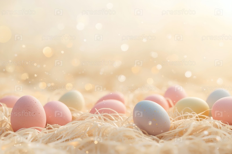 Концепция яркого и радостного Пасхального праздника в 2026 году.Нежные пасхальные яйца на фоне пастельной акварели
