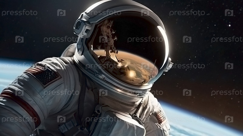 Счастливый космический день. астронавт в скафандре в космосе. захватывающий вид на планету Земля. изображение, созданное с использованием искусственного интеллекта