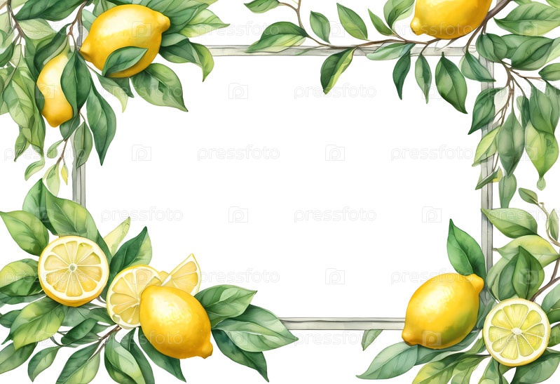 Свежие лимонные иллюстрации украшают границы пустого пространства, обеспечивая идеальный фон для приглашений или творческих художественных проектов