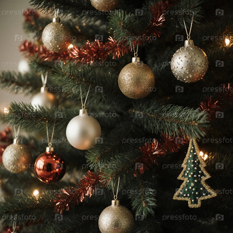 На сцене видны блестящие шары и небольшое дерево, висящее среди ветвей для праздничного торжества генеративного ИИ