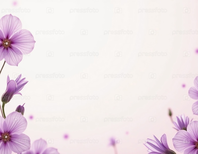 Ярко-фиолетовые цветы процветают на светлом, воздушном фоне, привнося жизнь и цвет в весеннюю атмосферу, когда природа просыпается после зимнего сна