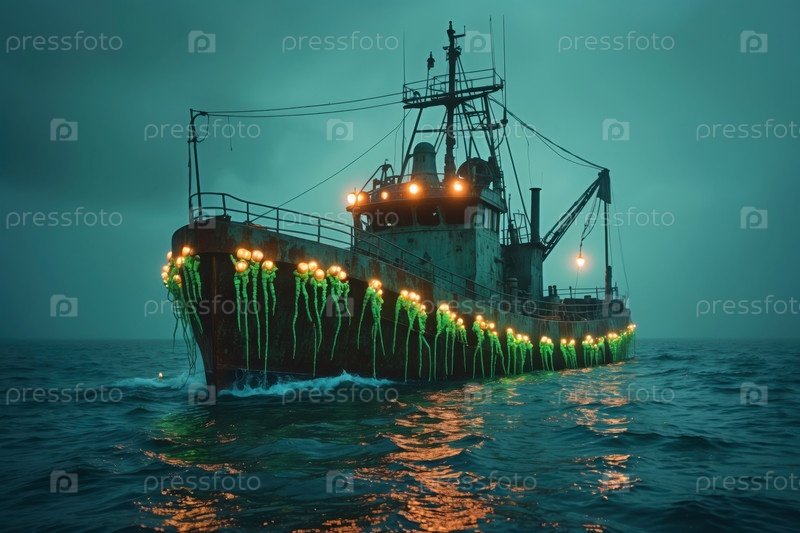 Футуризм научно-фантастический корабль транспортирует дизайн будущего в киберпространстве океана