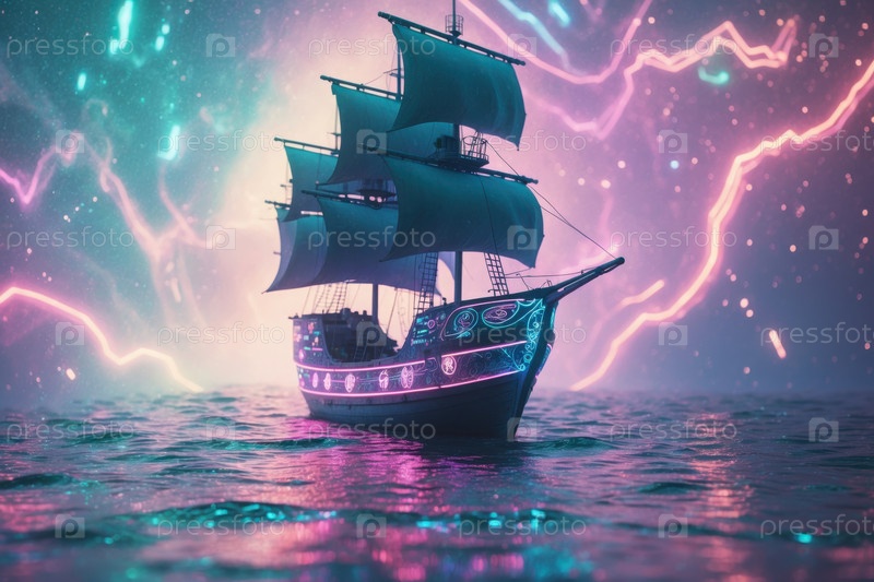 Футуризм научно-фантастический корабль транспортирует дизайн будущего в киберпространстве океана