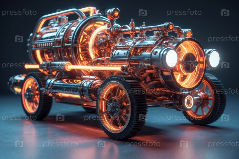 Steampunk генеративная металлическая футуристическая машина, фантастический дизайн транспортного автомобиля будущего