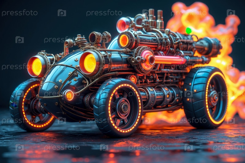 Steampunk генеративная металлическая футуристическая машина, фантастический дизайн транспортного автомобиля будущего
