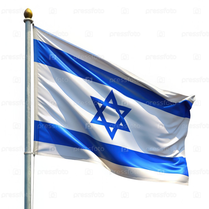 Израильский флаг развевается на полюсе на белом фоне